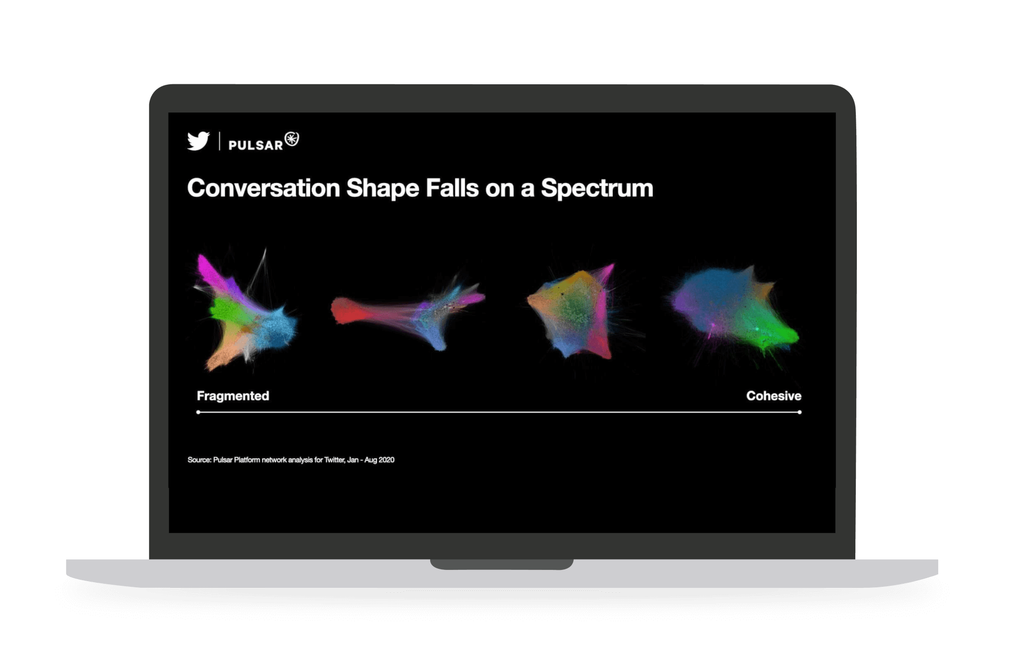 Where on the spectrum does your conversation fall? On one end, fragmented (signaling a more varied audience), on the other end cohesive, where the communities within the audience are more similar and closely connected to each other