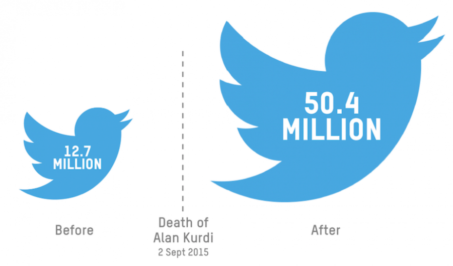 A Turkish press agency was first to publish pictures of the tragedy online at 8.42AM, and within 12 hours from the first tweet carrying one of them, the pictures had spread from a small, local circle of Turkish journalists and activists to a global audience of millions, thanks to Twitter and the power of the social graph, the platform's ability to act as a catalyst and bring together like-minded people who care about similar issues.