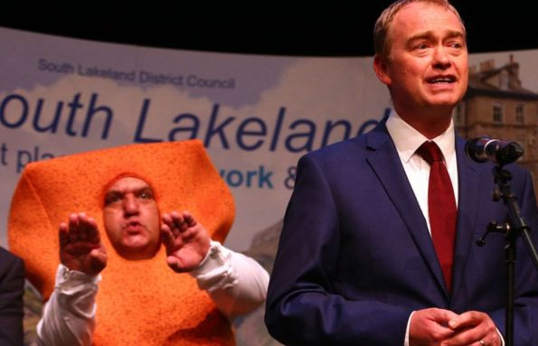 Those of us that stayed up to watch could rightly assume that they had, in fact, dropped off and were dreaming when they saw Mr Fishfinger swimming in the background as Tim Farron gave his victory speech in Westmorland and Lonsdale.