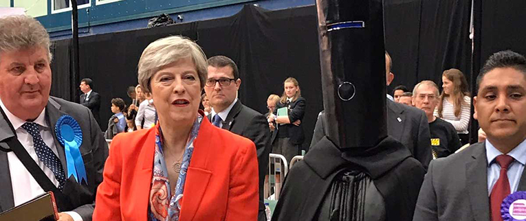 Amidst a night of arguments, tension, exit polls, surprises and hasty minority government maths, a very British tradition provided some welcome comic relief.